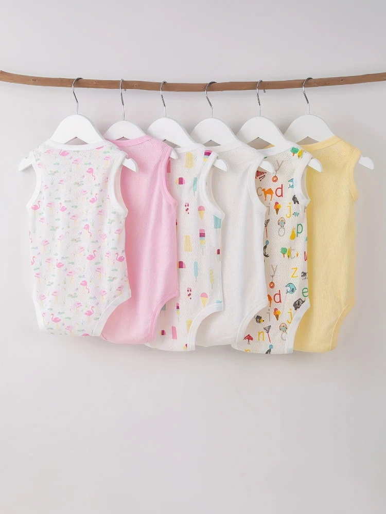 Keep your baby girl cool and comfy with this 5-piece set of soft cotton triangle rompers! Designed for summer, these lightweight and breathable jumpsuits are gentle on delicate skin and perfect for everyday wear. The comfortable fit allows easy movement for playtime and naps, while the variety of random styles keeps your baby looking cute and fresh. A practical and adorable essential for warm-weather dressing.