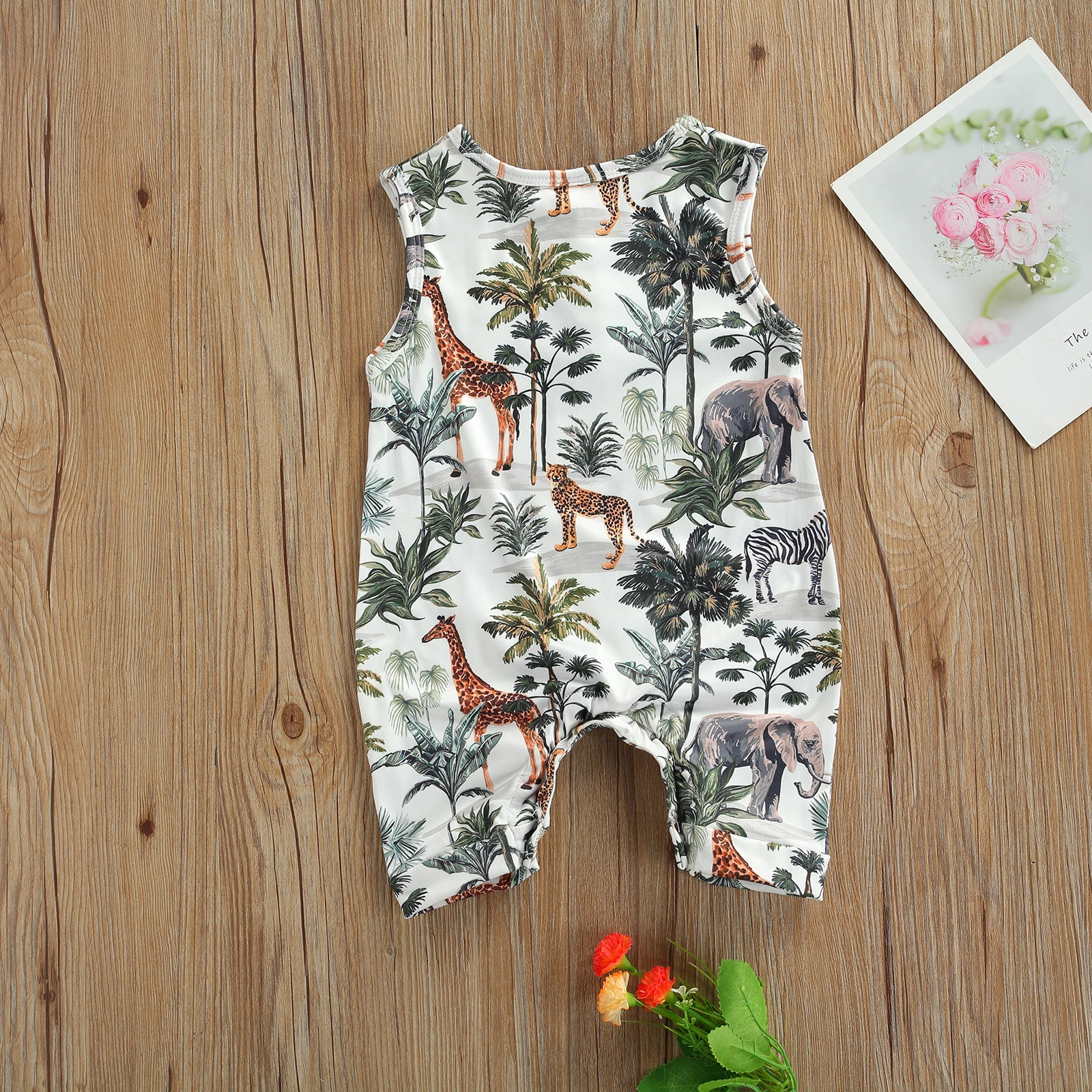 Keep your little one cool and comfortable with this Summer Newborn Baby Sleeveless Romper. Featuring a cute animal and tree print, this casual jumpsuit brings a playful nature-inspired style that’s perfect for warm weather. The sleeveless design and lightweight fabric help keep babies comfortable during sunny days and active playtime.