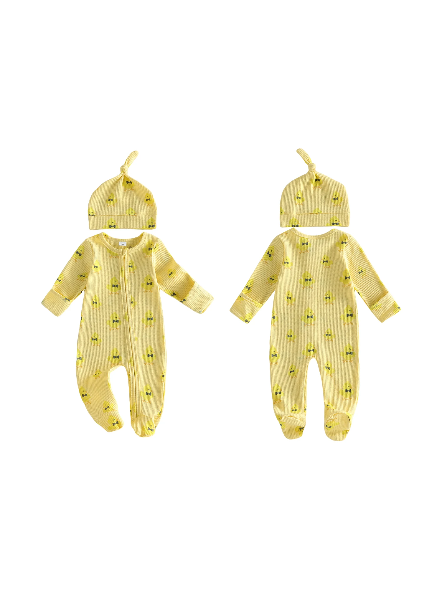 Make her first Easter extra special with this adorable Baby Bunny Romper Set. This sweet 2-piece outfit features a soft short sleeve snap-up footed romper with charming bunny details, paired with a matching headband for the perfect finishing touch. Designed for comfort and convenience, the breathable fabric keeps your baby girl cozy all day, while the snap closures allow for easy diaper changes. The footed design adds warmth and comfort, making it ideal for spring celebrations, family photos, and festive gatherings. Cute, practical, and picture-ready, this set is a must-have for Easter and beyond.