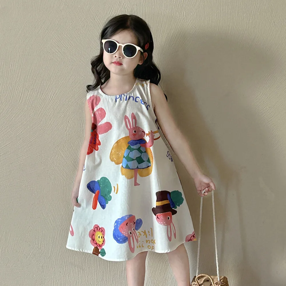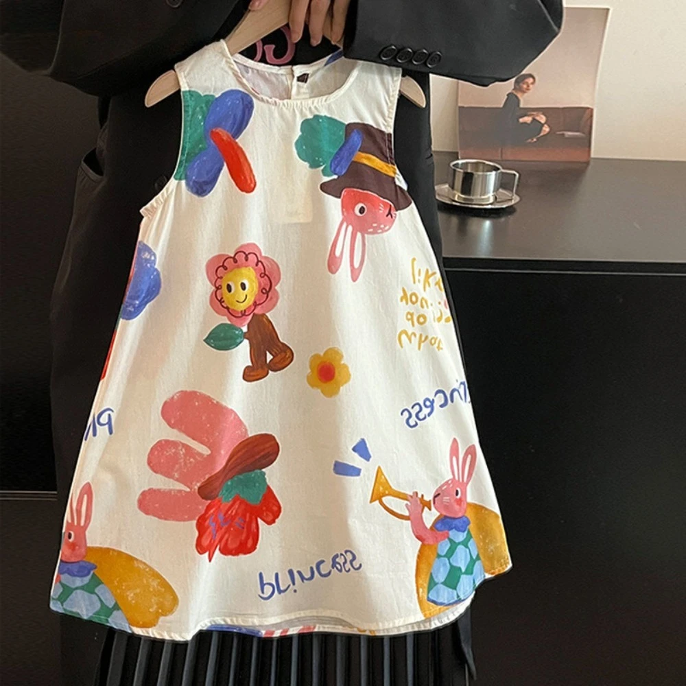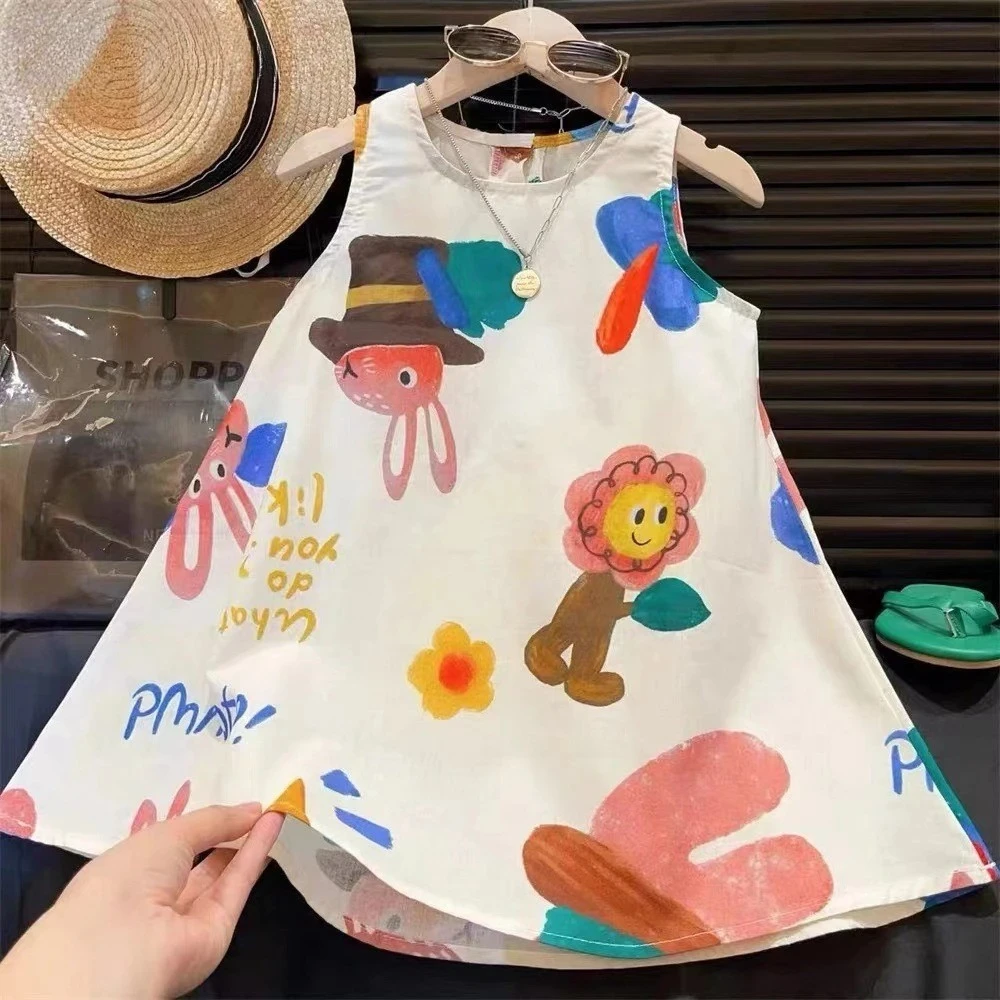 Keep your little one cool and stylish with this cute cartoon A-line dress! Designed for summer, this sleeveless outfit features a soft, breathable fabric that ensures all-day comfort. The playful cartoon pattern adds a fun and cheerful touch, while the classic O-neck and A-line silhouette allow easy movement for active girls. Perfect for playdates, outings, or everyday wear, this simple yet fashionable dress is a must-have for warm-weather adventures!
