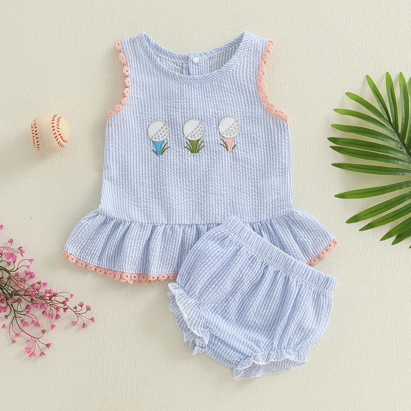 Designed for easy movement, this two-piece outfit is perfect for playtime, park visits, family outings, vacations, or everyday wear. The charming embroidery and bright stripes add a cheerful touch that makes this set both cute and practical for summer days.