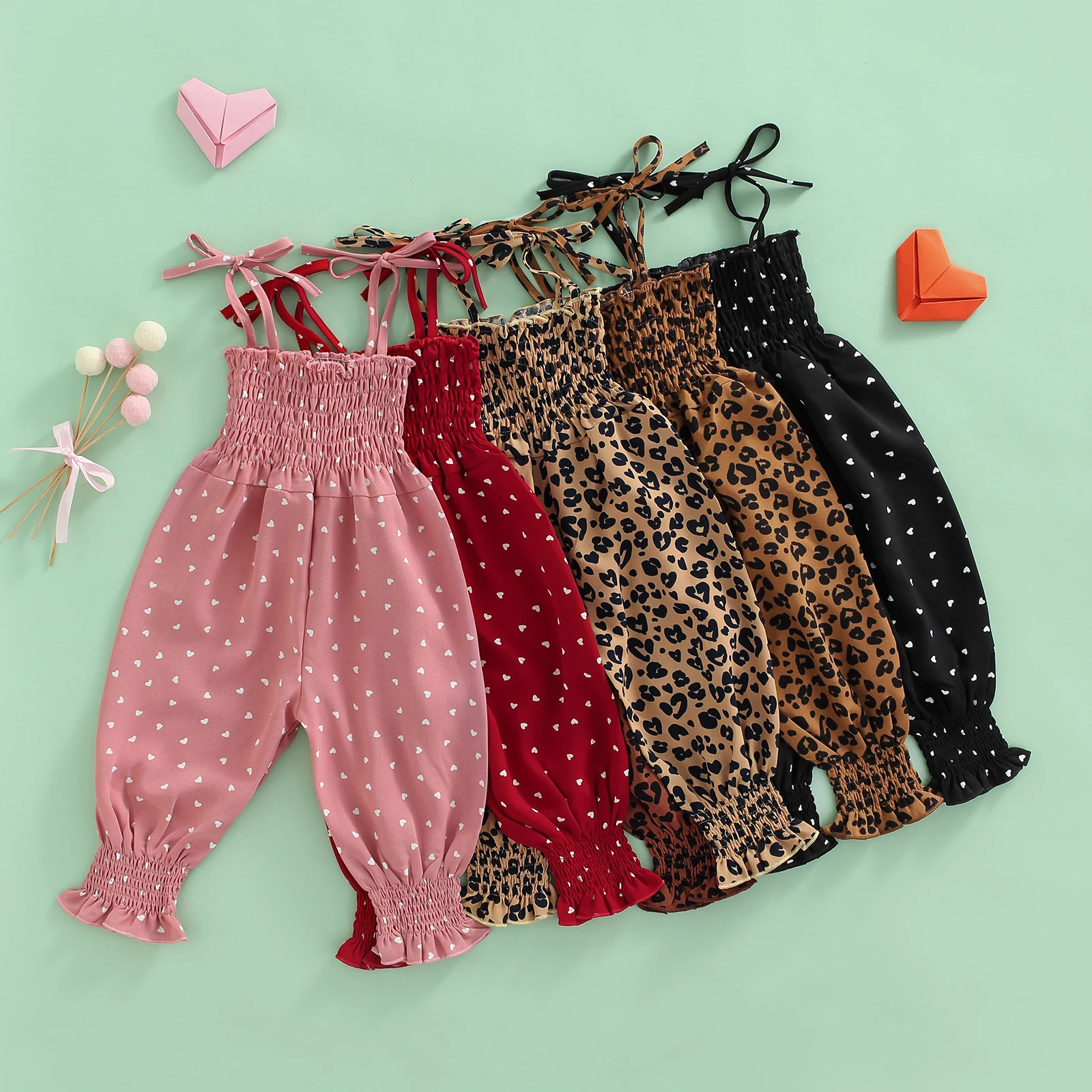 Add a fun and stylish touch to your little one’s wardrobe with this Toddler Girl Printed Sling Jumpsuit. Designed with adorable heart or trendy leopard prints, this cute romper features pleated details and adjustable tie-up straps for a charming and comfortable fit. The simple overall-style design makes it easy to layer with a t-shirt or wear on its own during warm days.